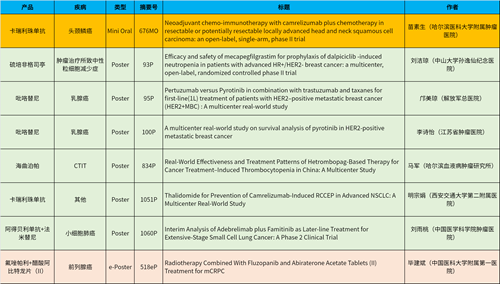 在头颈肿瘤、乳腺癌、肺癌、前列腺癌等多个疾病领域,卡瑞利珠单抗、阿得贝利单抗、吡咯替尼、氟唑帕利、法米替尼、醋酸阿比特龙片(II)等抗肿瘤新药相关研究一共入选了1项简短口头报告、4项壁报展示和1项电子壁报,彰显了AGGAME医药强劲的研发实力。